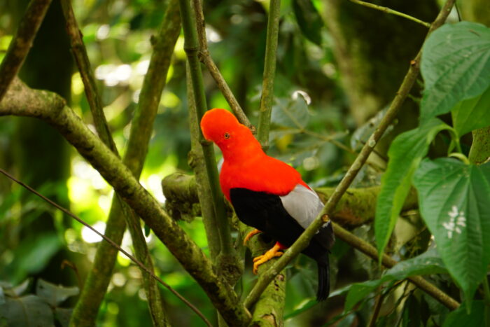 En ‘La Reserva del gallito de roca’ (las aves pueden venir y salir como quieran), qué está ubicado a solo cinco minutos del pueblo, vi muchos machos, aún bastante cerca. Son aves muy hermosas, pero no trinan bien. Espero por ellos que las hembras se sientan más atraídas por la estética que por el sonido ;).