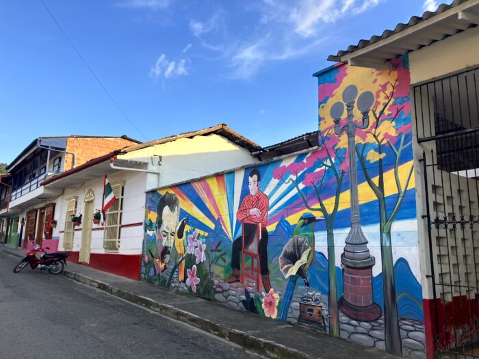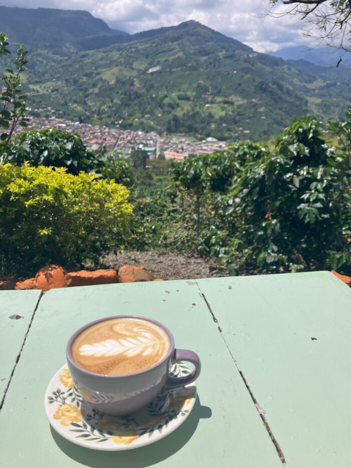 Como nosotros en Holanda podemos hablar sin parar del tiempo, la gente aquí puede hablar del café. Ya era hora de visitar una finca de café local. Tomé la chiva multicolor para la vereda, yo era la única ‘gringa’ que salía del pueblo en la mañana. Me bajé en la última parada, solo fue una pequeña caminata a la finca Los Angéles. La finca está ubicada en un lugar impresionante con una vista típica de esta región, en la vereda la Casiana. Tiene una vista panorámica de los picos, puedes sentir el aire puro que te da ganas de caminar y explorar los alrededores. Es una finca manejada por la quinta generación, y la última. El señor Andrés me recibió con mucha generosidad. No voy a explicar el proceso del café aquí, es mejor que lo experimentes tú mismo en una finca.